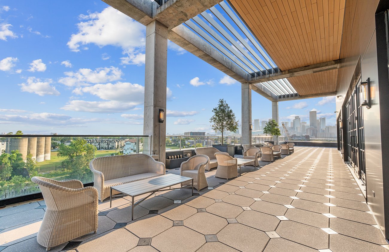 Le Tesserae is a 20,000 square-foot indoor/outdoor private event space and rooftop patio bar overlooking Buffalo Bayou and Houston Skyline. The venue not only boasts a stunning reception lobby, extensively detailed with a hand-laid mosaic floor but also a spacious ballroom, enveloped by floor-to-ceiling windows, allowing our patrons to seamlessly flow between inside and outside settings. At Le Tesserae, we pride ourselves on providing a level of hospitality that transforms events into unforgettable experiences. Our attentive staff are committed to ensuring every detail is taken care of, allowing you and your guests to enjoy every moment.